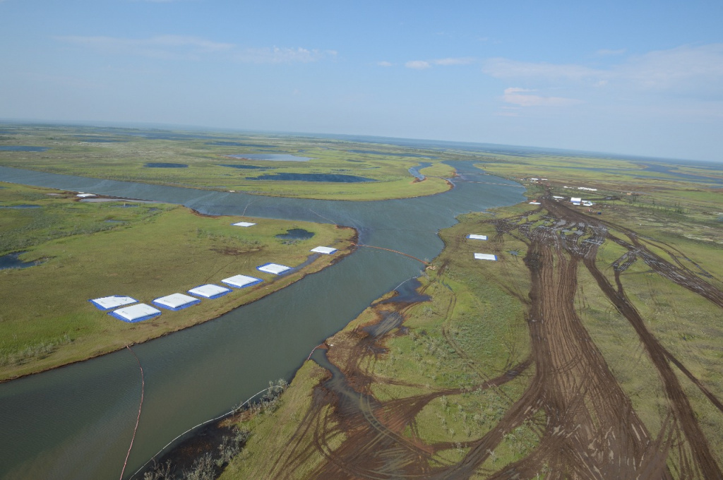 6,500 sq m of area on the banks of the river have been treated with sorbents. To ensure an effective clean-up operation, 8 tonnes of sorbents have been shipped to Norilsk.